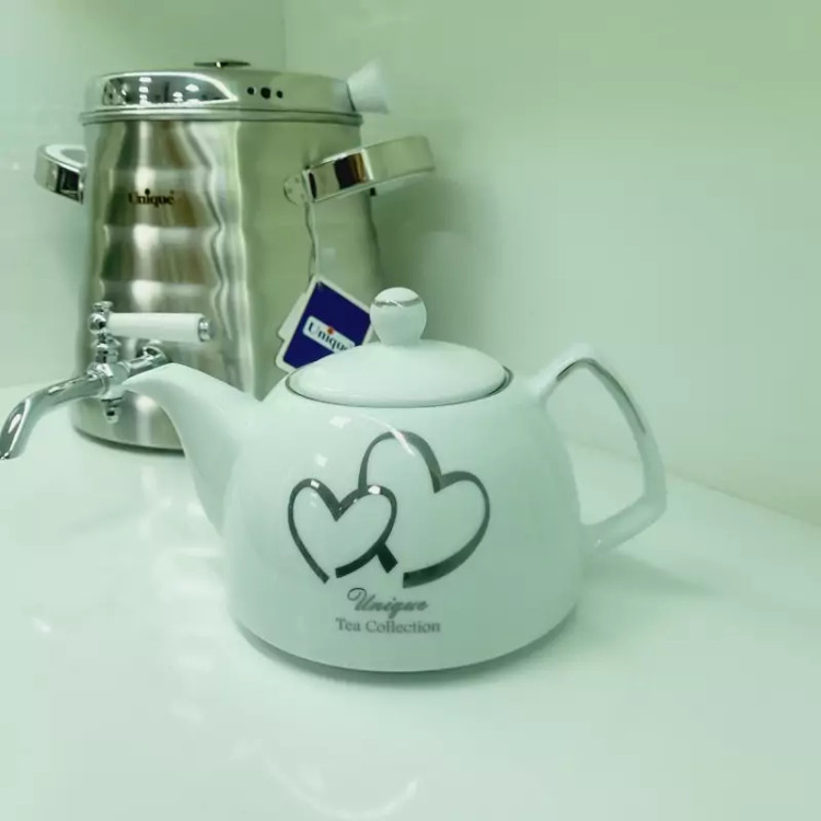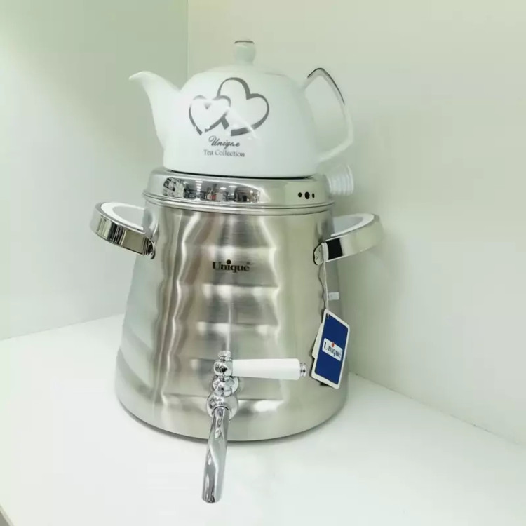 ست کتری و قوری استیل برند یونیک،جنس قوری چینی درجه یک،گنجایش کتری 5 لیتری، قوری 1 لیتری