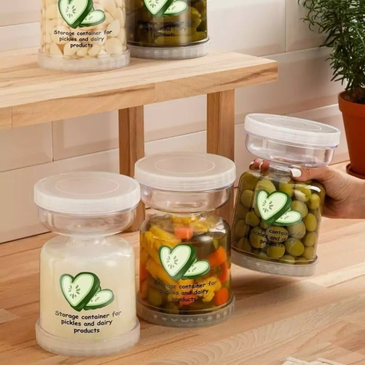 ابعاد محصول 11×18 سانتی متر وزن بستهبندی 400 گرم جنس پلاستیک برند آکام - AKAM توضیحات این ظرف نگهدارنده بصورت آبگیردار جهت استفاده آسان از مواد غذایی نظیر انواع ترشیجات، خیارشور، زیتون، پنیر و تمامی موادغذایی که ملزم به نگهداری در آب و مایعات میباشند. قابل استفاده منازل مناسب انواع ترشی جات، خیارشور، پنیر و سایر مواد غذایی که نیاز به ماندن در آب دارند.