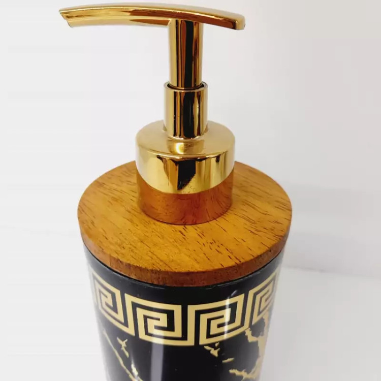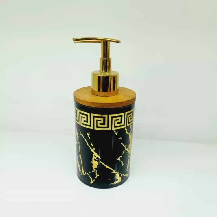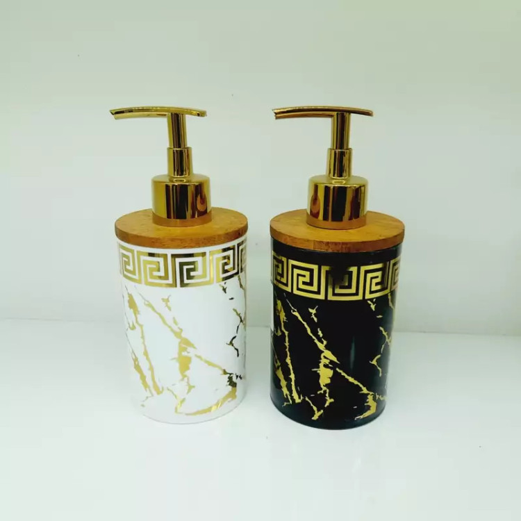 جا مایعی ماربل در دو رنگ سفید و مشکی پمپی درب بامبو حجم 330 میلی لیتر مدل گرد