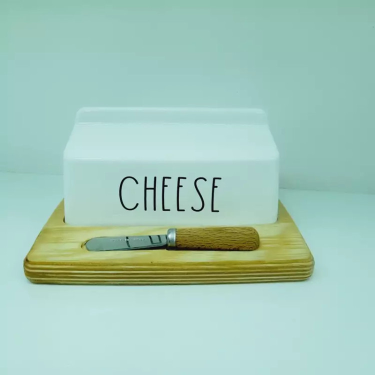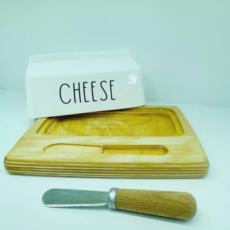 کره خوری زیره چوبی سرامیکی همراه کارد دسته چوبی