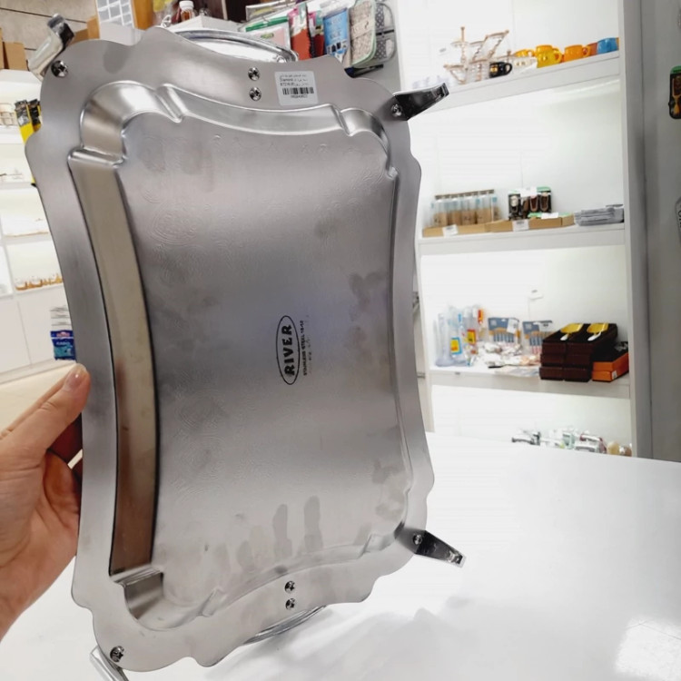 سینی استیل دسته و پایه نقره ای برند اصلی ریور زیبا و با کیفیت عالی