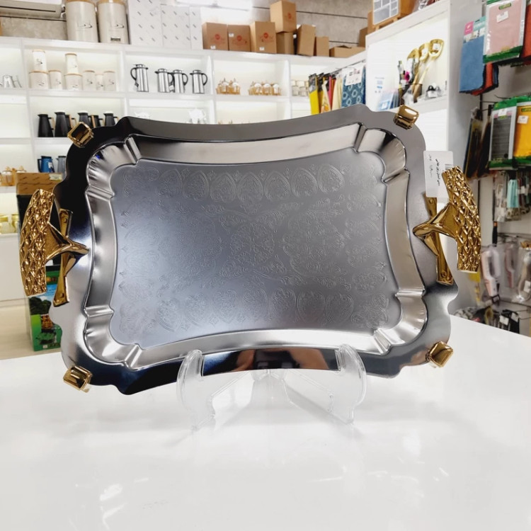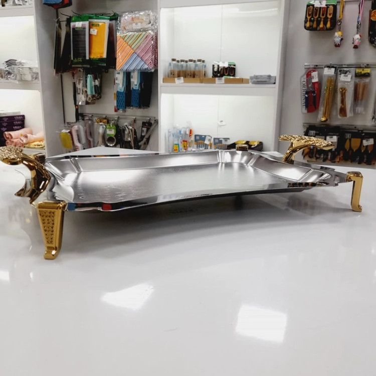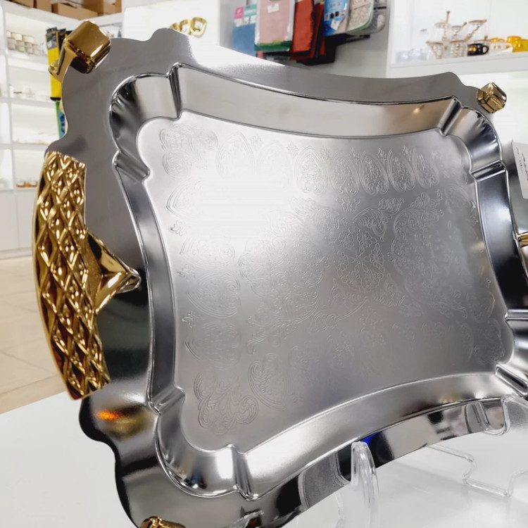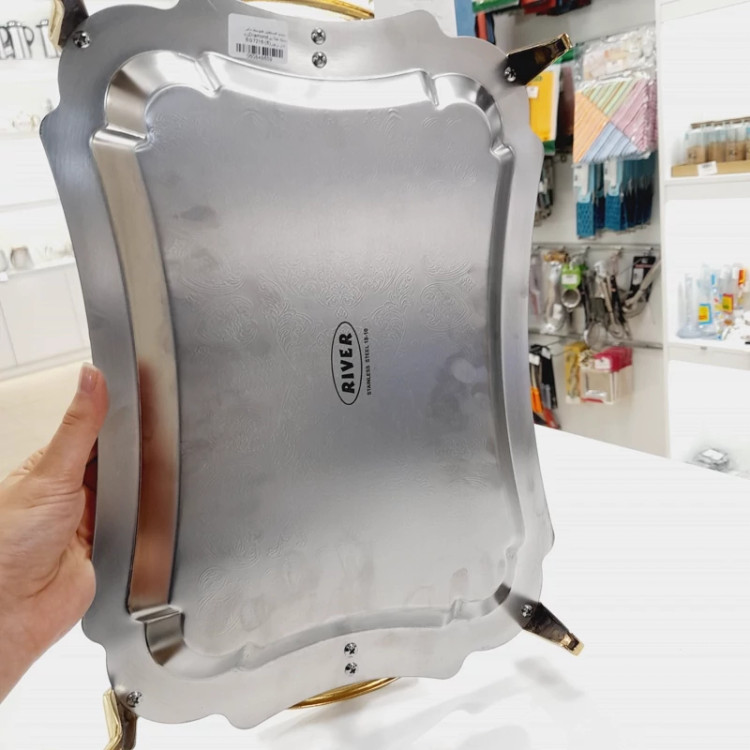سینی استیل دسته و پایه طلایی رنگ ثابت کیفیت عالی برند اصلی ریور بسیار زیبا و منحصر بفرد