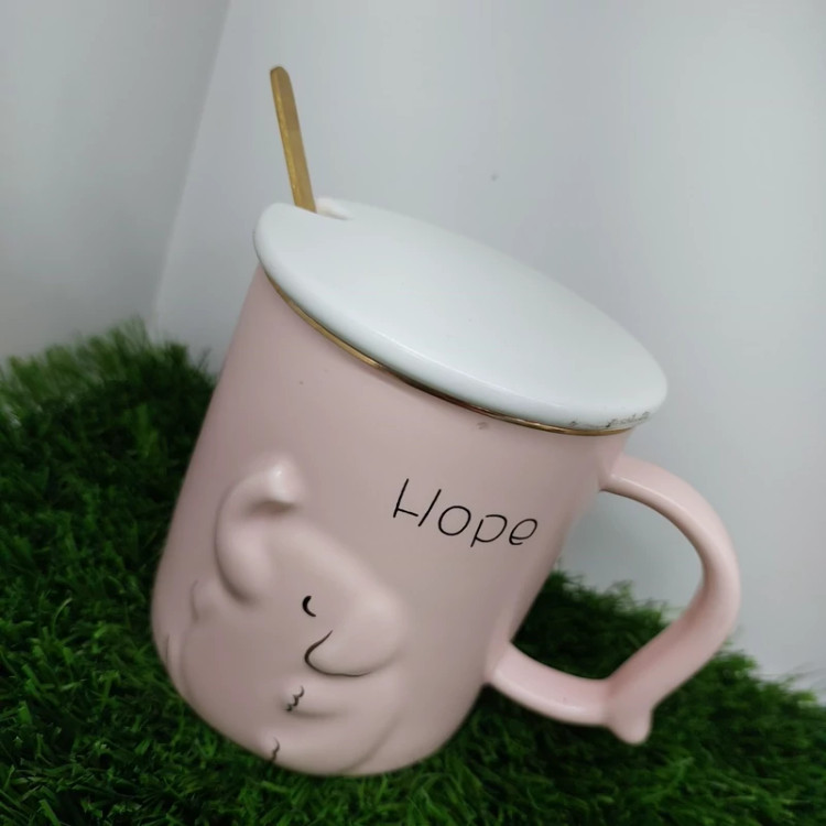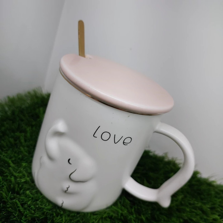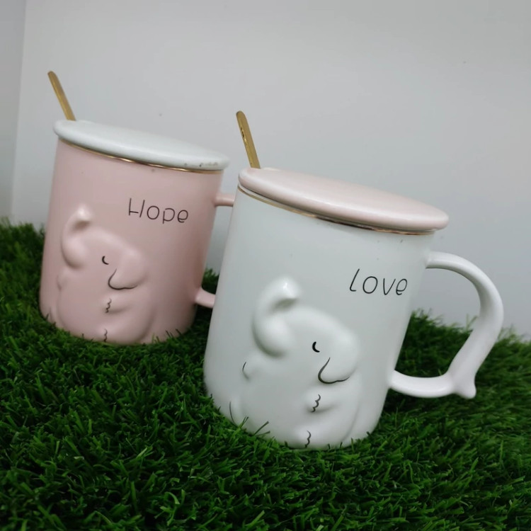 ماگ سرامیکی طرح فیل درب و قاشق دار قاشق طلایی