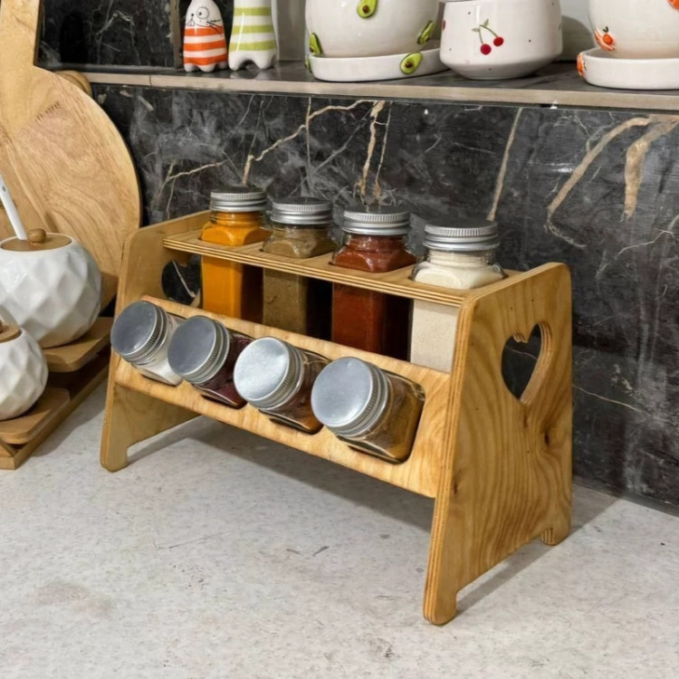 استند مکارتی جای ادویه 8 پارچه درب 3 حالته چوب روس