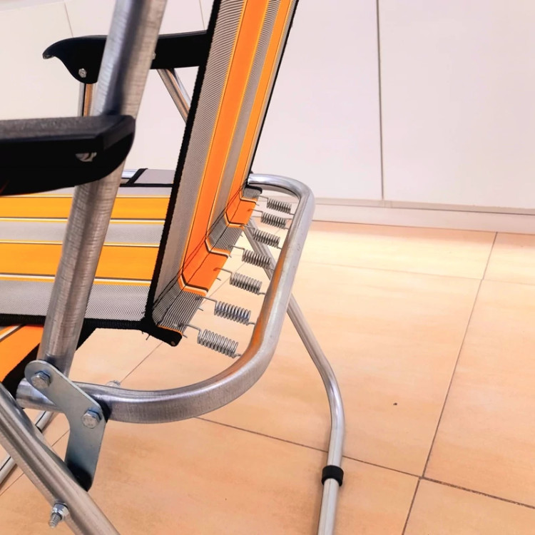 صندلی یاحلی تاشو پایه آلومینیوم ◉مدل پایه هلال ◉تحمل وزن بالا ◉دسته نشکن ◉7 فنره ◉ضخامت لوله 20 سانت