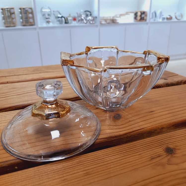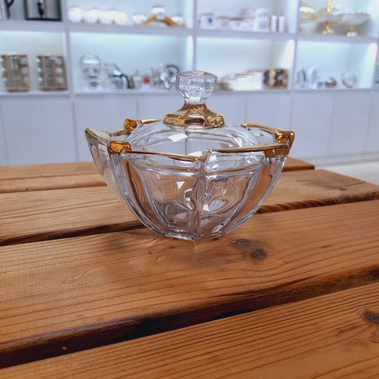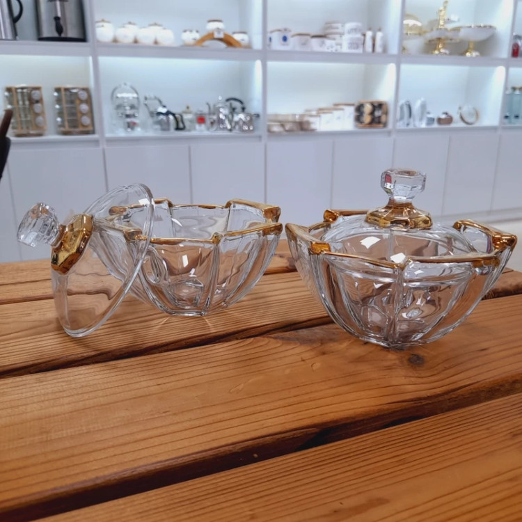 قندان لب طلا مدل استیج سایز بزرگ جدید با کیفیت و خوش تراش لب طلای رنگ ثابت