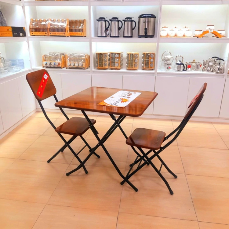 ست میز و صندلی تاشو برند گونش میز تاشو ام دی اف قهوه ای پایه فلزی مستحکم مربع صندلی تاشو ام دی اف