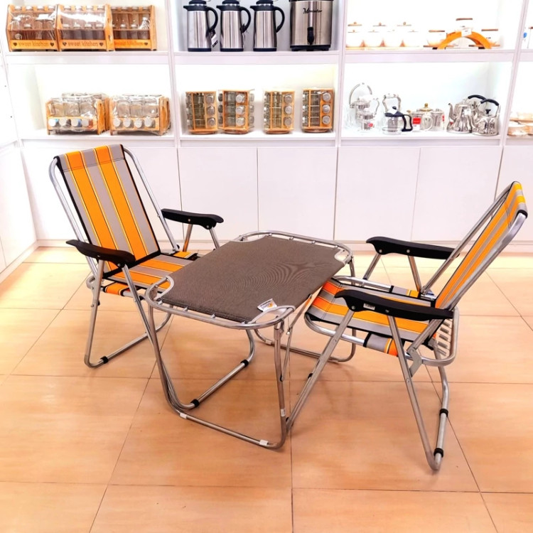 ست میز و صندلی ساحلی تاشو پایه آلومینیوم مدل مبلی کاور دار ◉دسته نشکن ◉7 فنره ◉ضخامت لوله 20 سانت