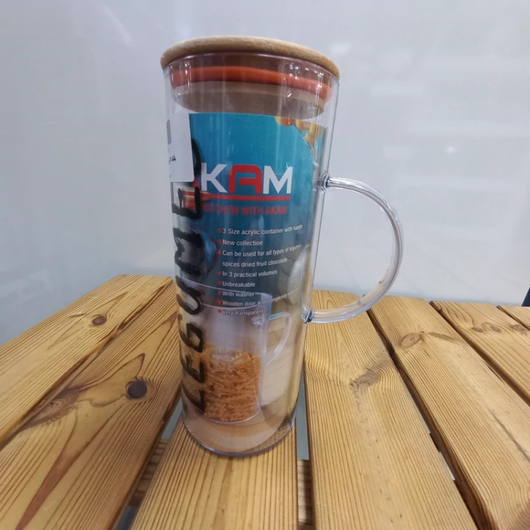 بانکه حبوبات آکرولیک دسته دار درب چوبی