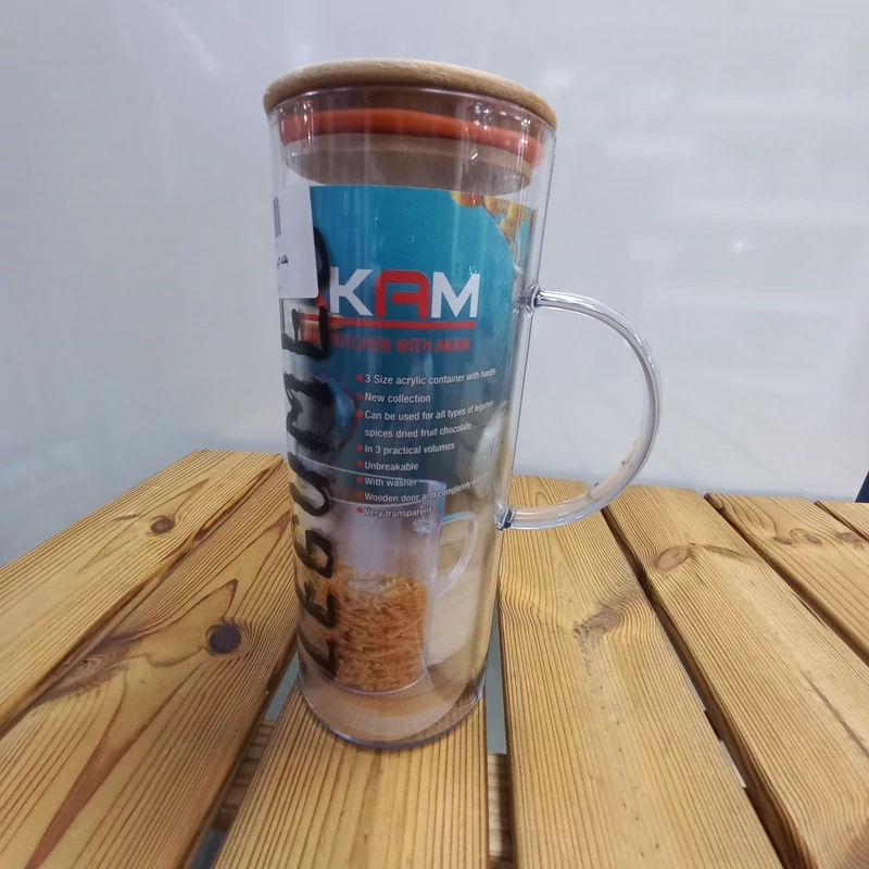 بانکه حبوبات آکرولیک دسته دار درب چوبی سایز بزرگ