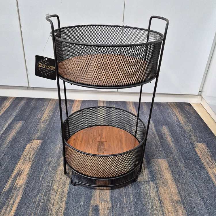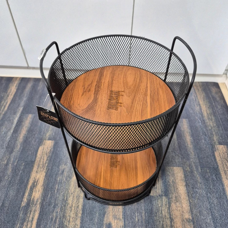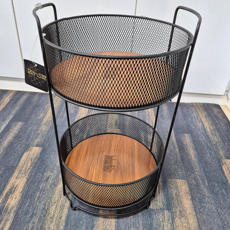 جا پیازی دوطبقه گرد کف چوبی بهساز فلز فلز آبکاری