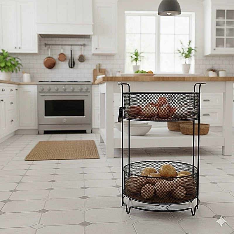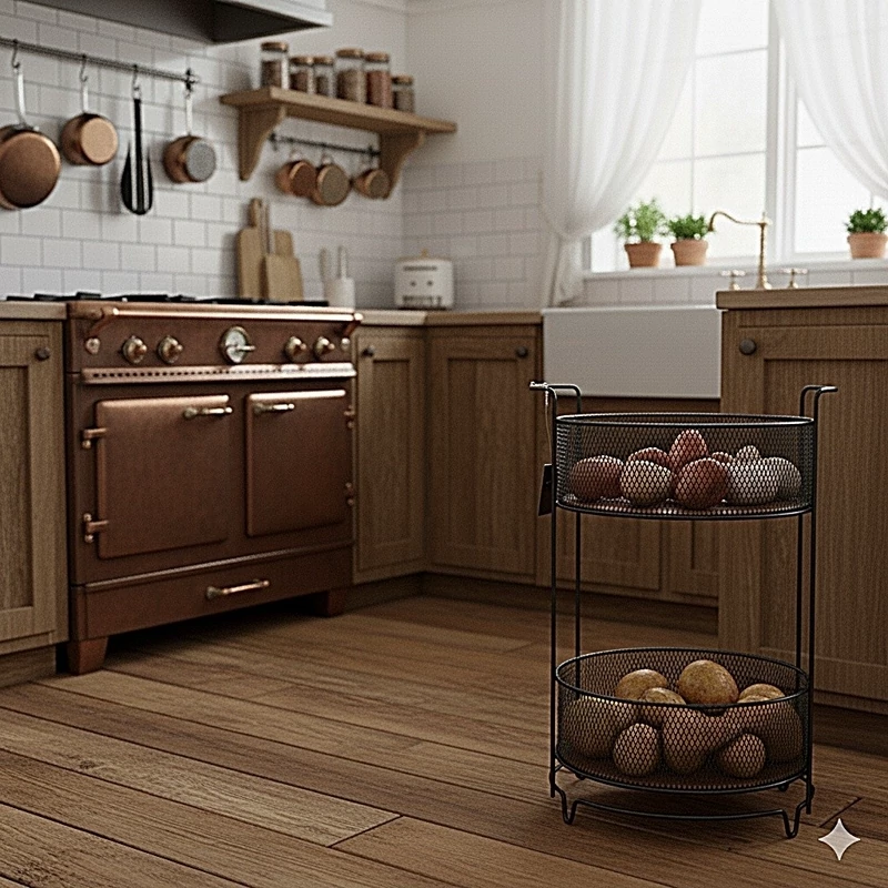 جا پیازی دوطبقه گرد کف چوبی بهساز فلز فلز آبکاری