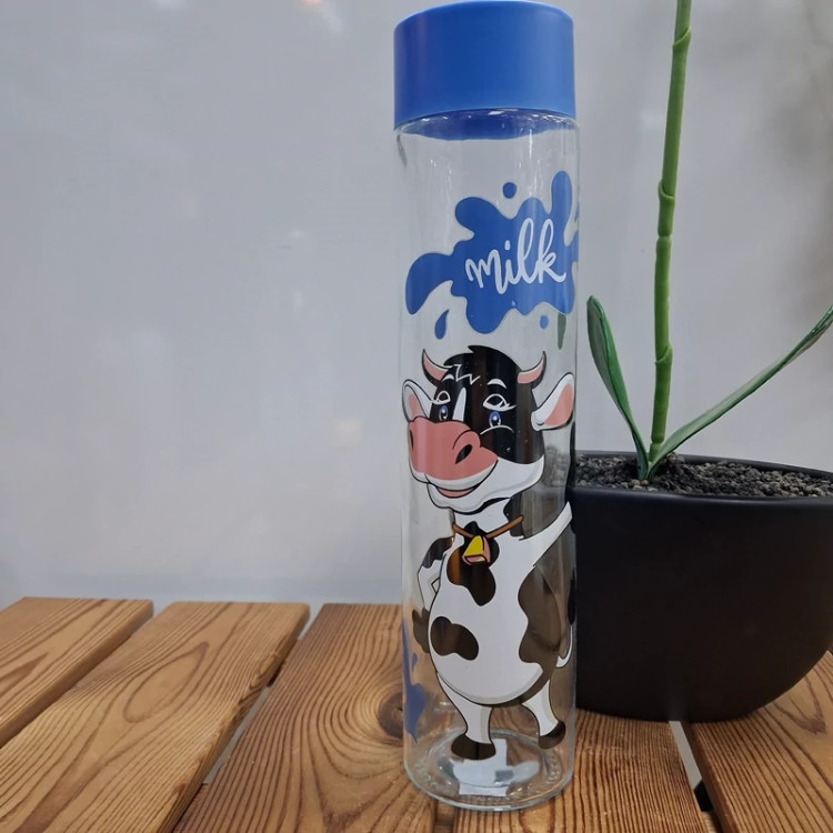 بطری آب استوانه ای درب پلاستیک طرح گاو