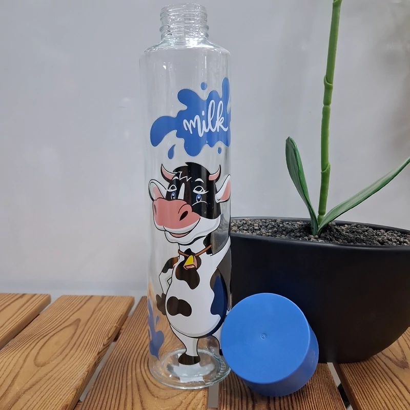 بطری آب استوانه ای درب پلاستیک طرح گاو