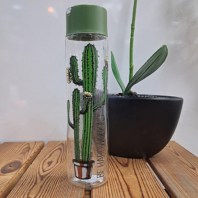 بطری آب استوانه ای کوچک طرح کاکتوس