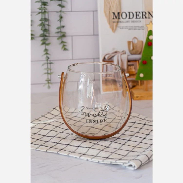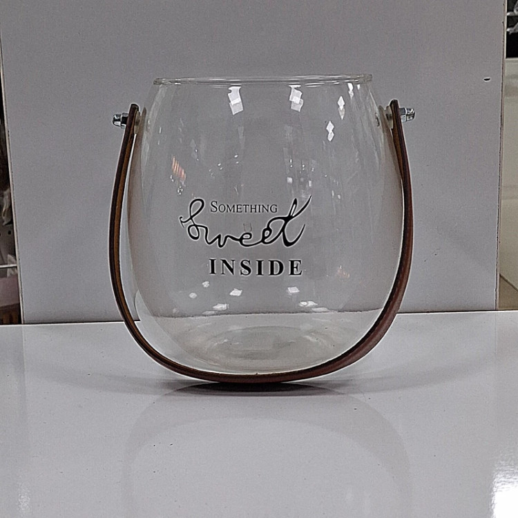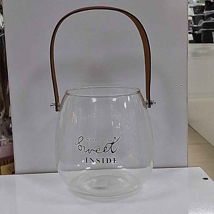 گلدان روما دسته چرمی تاپ پلاست شیشه ای