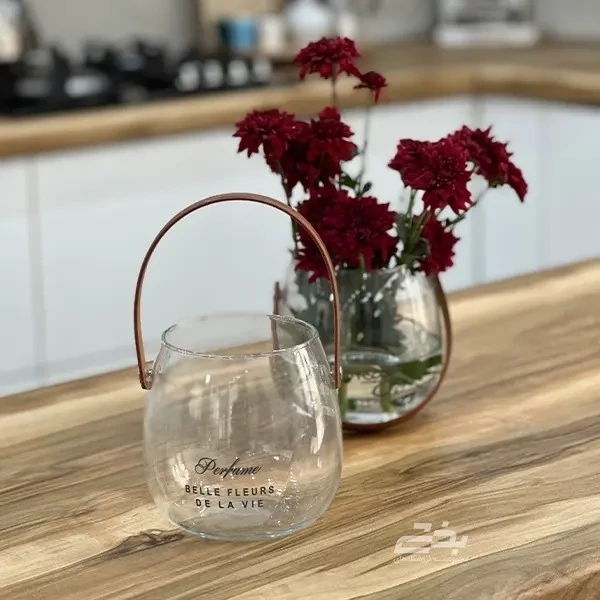 گلدان روما دسته چرمی تاپ پلاست شیشه ای