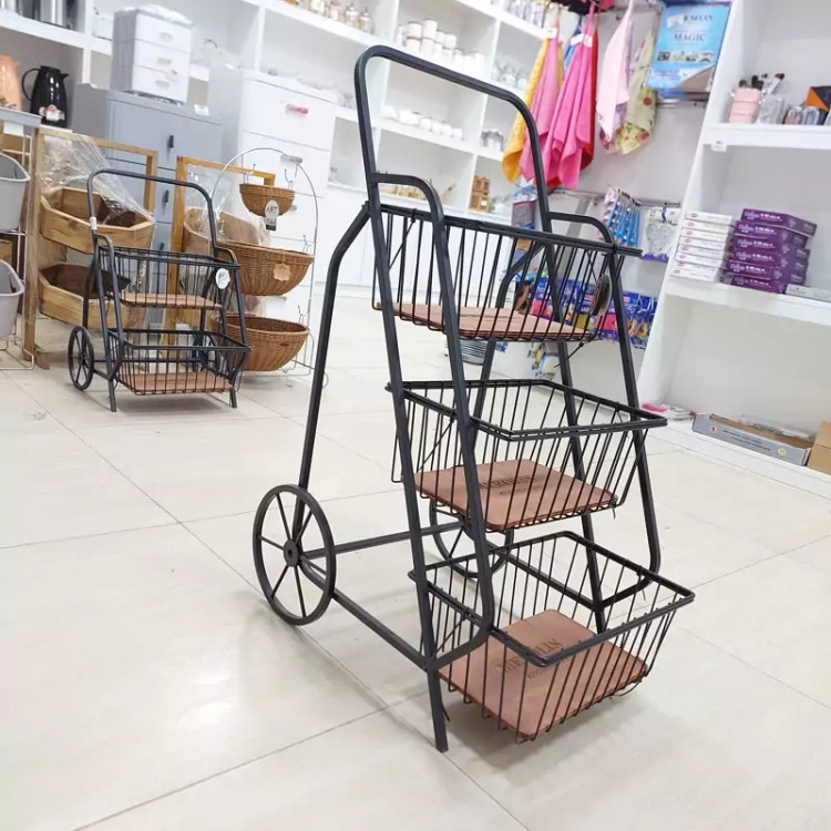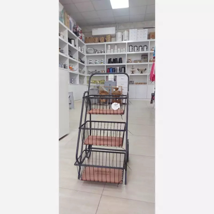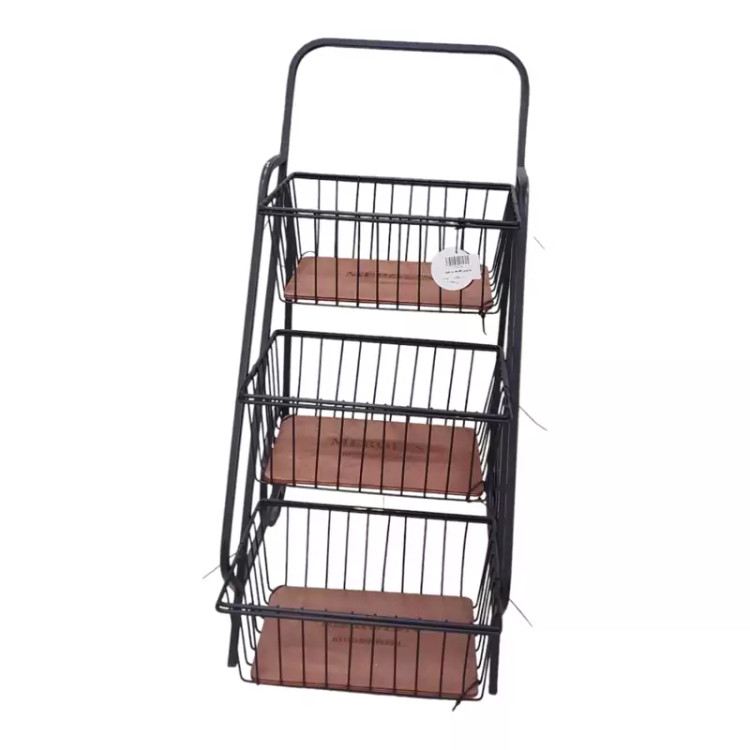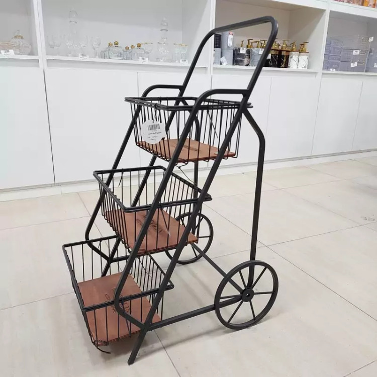 سبد 3 طبقه نظم دهنده سیب زمینی پیاز طرح کالسکه با کیفیت بالا.جنس چوب و فلز آبکاری رنگ مشکی ثابت